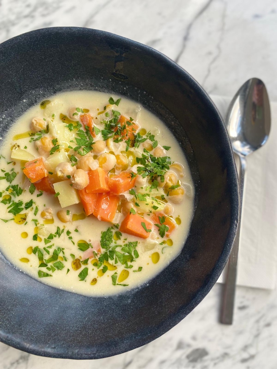 FENNEL WITH TURMERIC, CELERIAC WITH HARISSA, CRUNCHY CHICKPEAS, QUINOA, LEMON TAHINI DRESSING