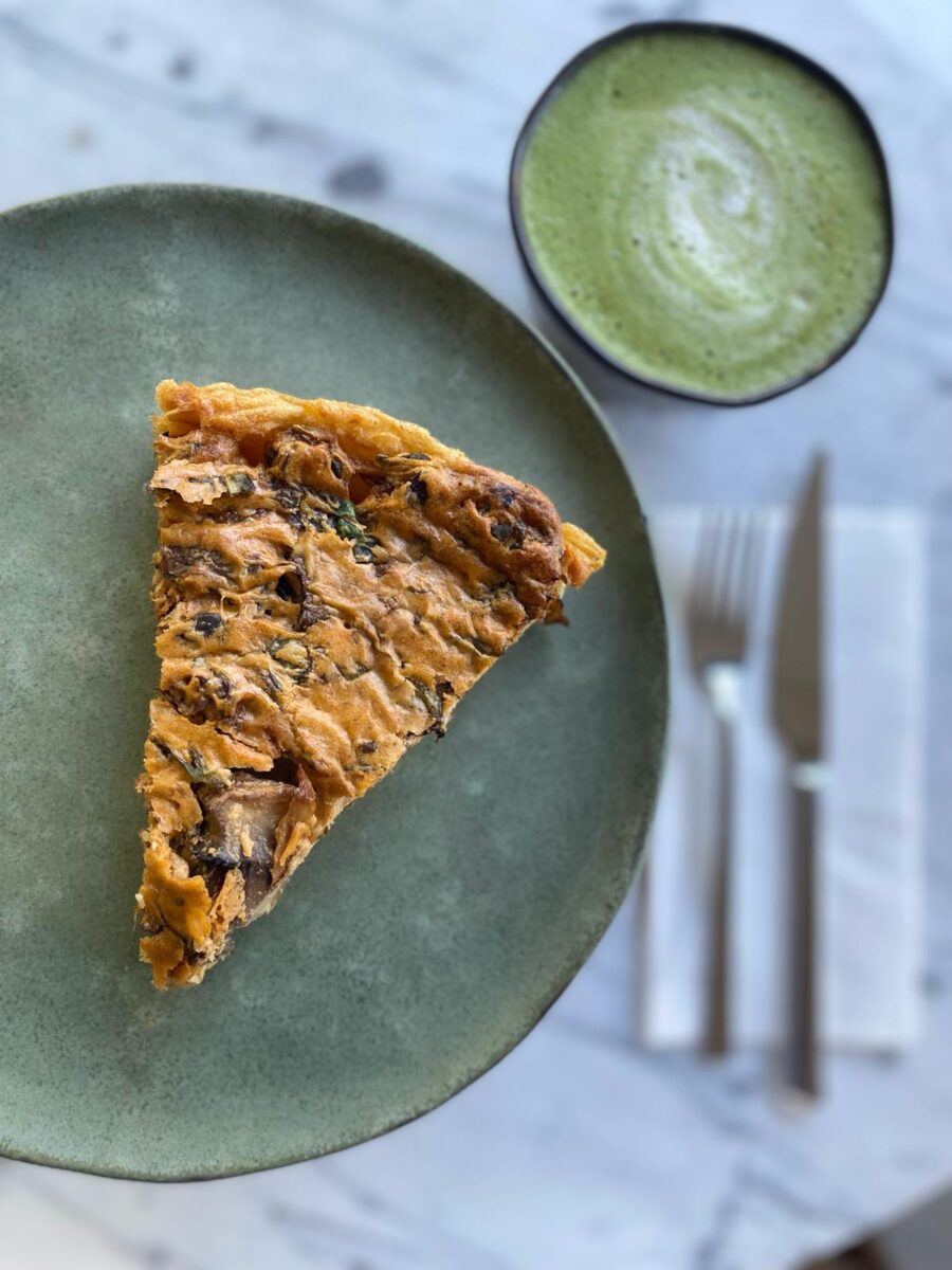 Creamy almond lime sosumuz, pazı ve kestane mantarlı glutensiz tatlı patates gnocchi