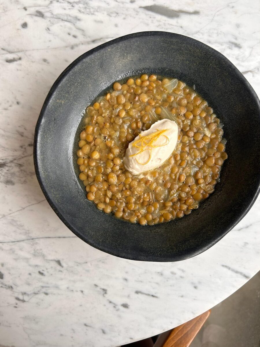 PİRİNÇ YUFKASINA SARILI HUMUS, HAFİF ACI HARİSSA, FESLEĞEN, ROKA, ZEYTİN TAPENADE, FINDIK TURBU